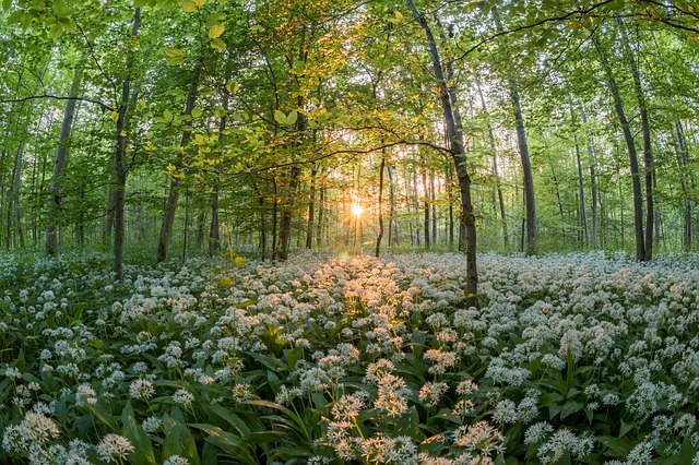 - Flowering Garlic Plants in the Forest by jonathansautter